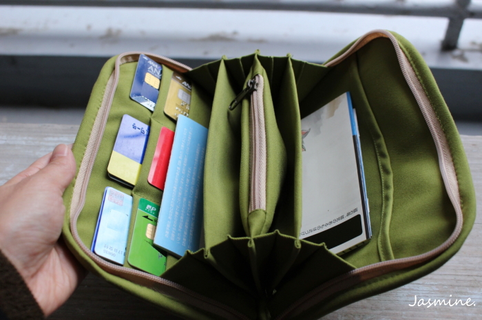 お手持ちの通帳やカードなどをまとめておけるポーチです。