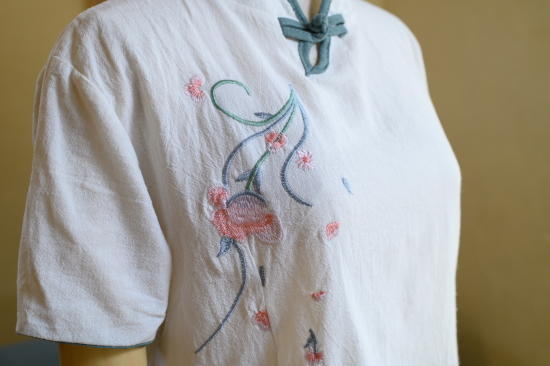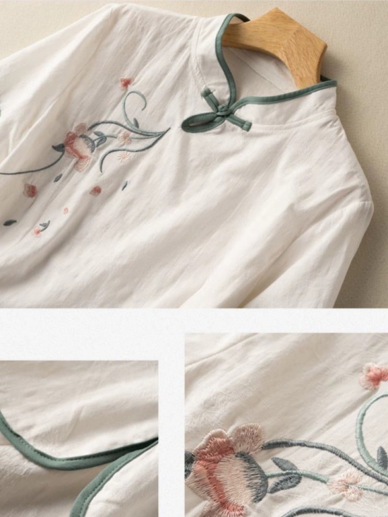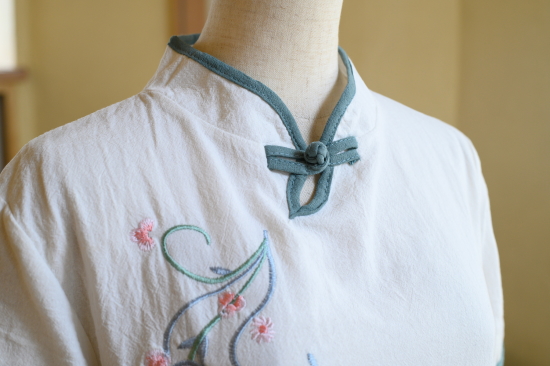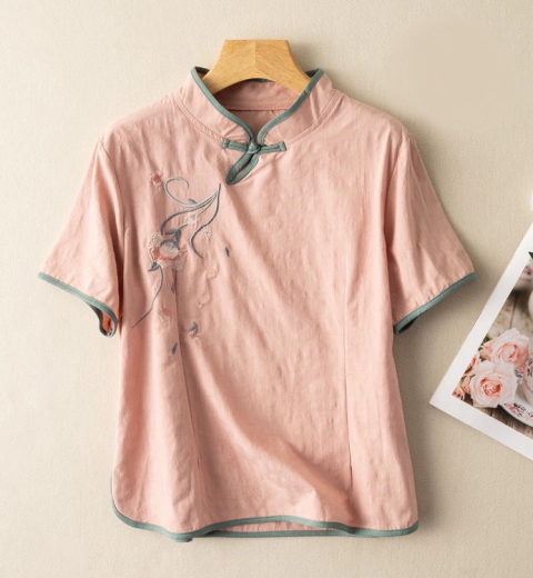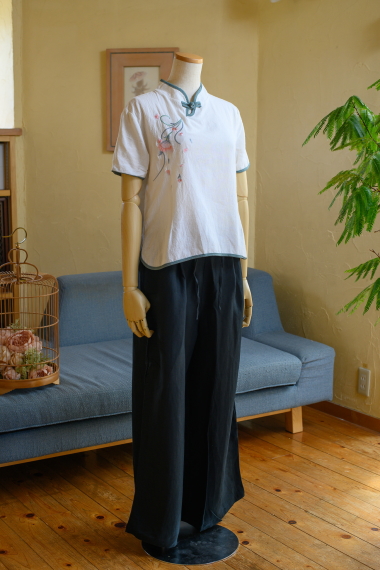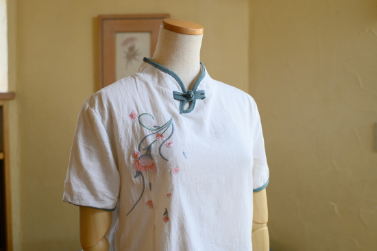 | クラッシックシノワ刺繍ブラウス 5000+Tax(5500) 清楚な雰囲気のチャイナブラウスは、シンプルで流行りすたりのない定番スタイル 一枚でチャイナスタイルの完成です。 ボトムをデニムやカジュアルなものにすることで、普段使いに溶け込むデザインです ・素材・ リネン コットン ・お手入れ・ 洗濯機手洗いコース(お洒落着用洗剤使用) アイロンは中温可 ・サイズ・ バスト104cm 着丈58cm 袖37cm(7~11号) ![]() ![]() ピンク SOLD OUT