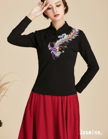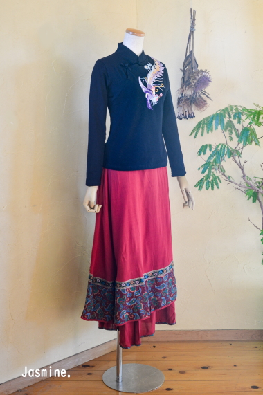 刺繍チャイナカットソー
