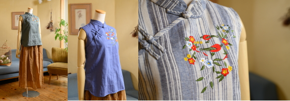 Re:小鳥刺繍リネンチャイナブラウス 6600(6000+Tax)