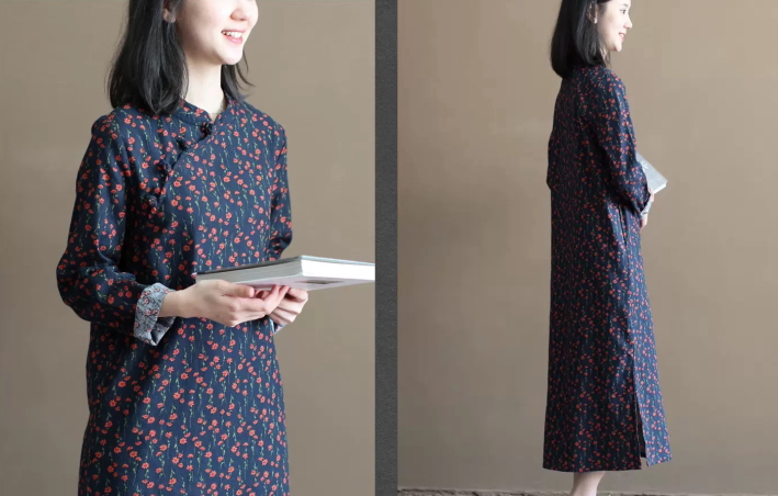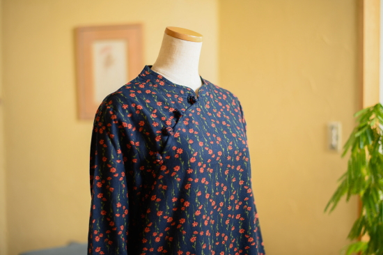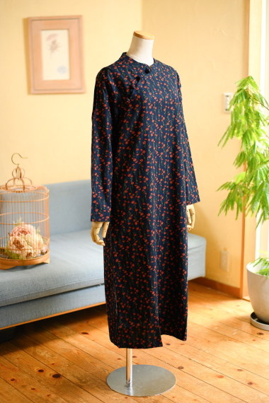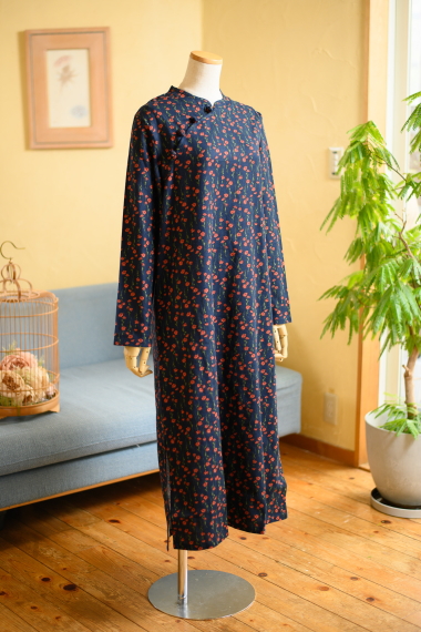 オレンジフラワー×ネイビー チャイナワンピース