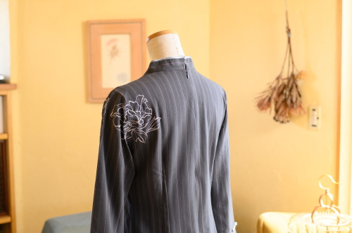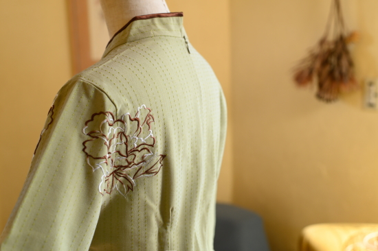 ピスタチオブラウン![]() 優しいピスタチオグリーンがきれいです ![]() 4色の中で一番カジュアルなお色かも。 ![]() 立体的なステッチのような折柄が入っています。 ![]() 背面の刺繍はこんなかんじ ![]() お袖は少し広がっていて素敵 |