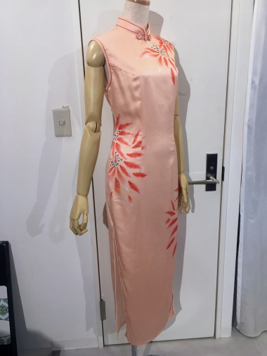 | 上海レトロチャイナ 花火フラワー Price 15000- Tax ![]() 薄い薄い茜色(オレンジ系ピンク)のチャイナドレスです。 ウエスト部分に大きな柄が入るのでウエストがとてもほっそり見る目くらまし効果も ![]() 切り替えなしのフレンチスリーブがとってもクラシカルです ・素材・ サテン(ポリエステル レーヨン) やわらかく上品な光沢の素材です ・お手入れ・ ドライクリーニング ・サイズ・ M バスト86 ウエスト70 ヒップ90 着丈128(cm) L バスト90 ウエスト74 ヒップ94 着丈130(cm) |
