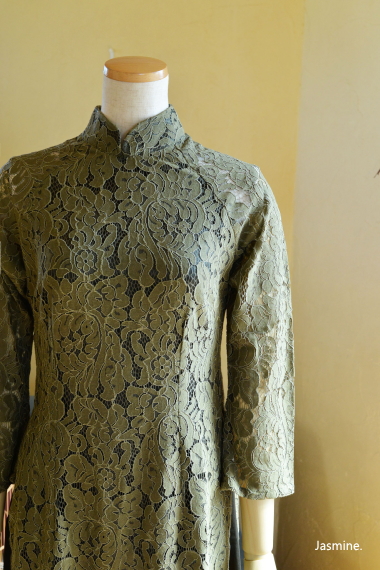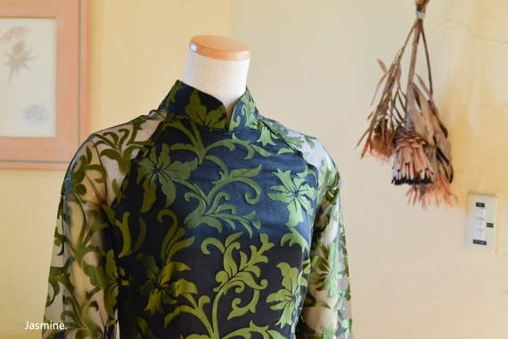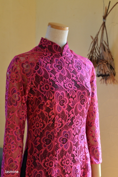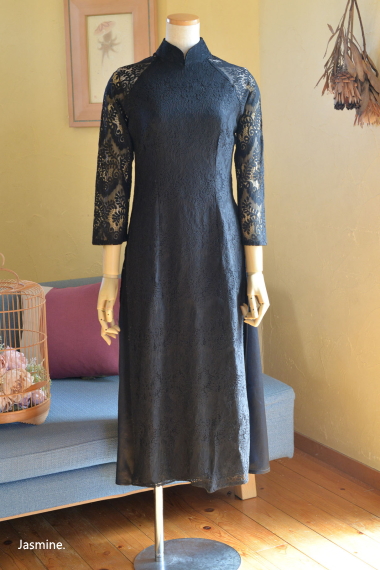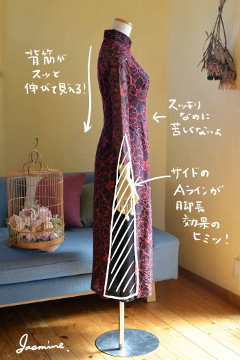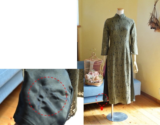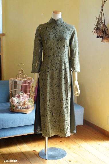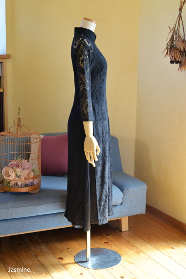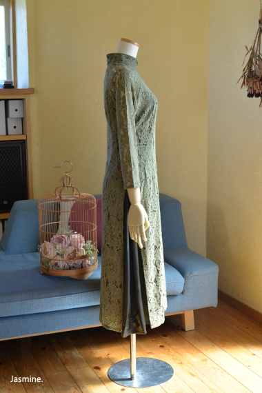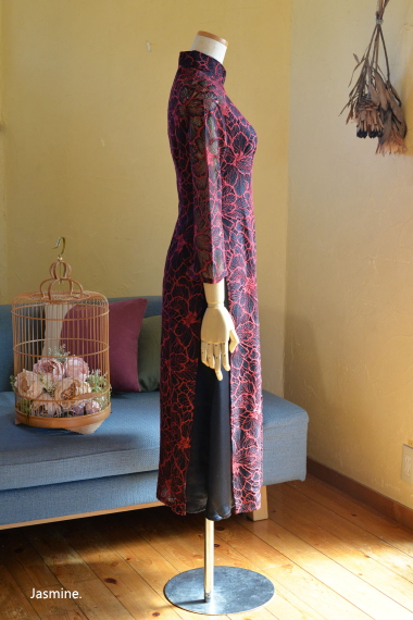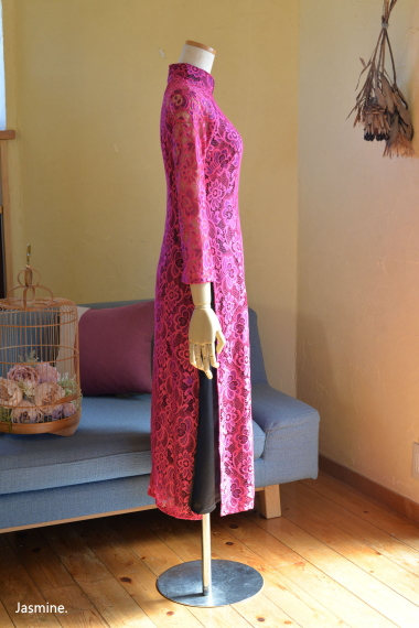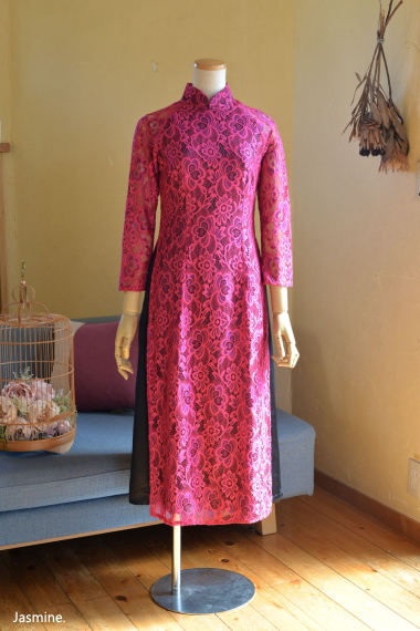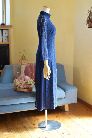 厚地レース アオザイ風スウィングドレス 13200-(inTax)![]() ![]() しっかりとした厚地のレース素材のアオザイドレス。 重みのある高級感のある素材です。 ![]() アオザイはパンツを合わせるのが通常ですが、こちらはスカートを組み合わせたスタイル。 動きやすく、着心地のいいドレスです。 スカートとアオ(アオザイの上着)は一体化しておりますのでバックファスナーでワンピースのように着られます。 ★生地が厚手ですので、レターパックでの配送はできません★ ![]() こちらは以前人気にて完売したものの着用画像↑ 再入荷します!!と宣言してからコロナなどいろいろ重なりやっと到着しております。 前回とは基本的なつくりとサイズ感は同じですが、細かい着丈などが違っています フレアなので着席もダンスもラクチンなスタイル! 動き回りたい!パーティでもちゃんと食べたい!演奏に使いたい! ダンスに使いたいなど、動きを制限しないらくちんドレス。 なのに、体のラインがとってもキレイに見えます。 ポップアップショップでも、ご試着されたお客様のほぼ全員に「これイイ!!」と大絶賛されたワンピース! しっかりシノワズリな雰囲気はありますが、 アオザイやチャイナドレスほど「大げさ感」や「やり過ぎ感」がでないので 黒やネイビーやモスグリーンは普段のお出かけ着使いにもお勧めです。 素材 ポリエステル レーヨン 裏地はややストレッチする素材です お手入れ ドライクリーニングをおすすめします サイズ Sサイズ バスト88cm ウエスト72cm 着丈113cm Mサイズ バスト92cm ウエスト76cm 着丈114cm Lサイズ バスト96cm ウエスト80cm 着丈115cm *袖はラグランスリーブなので個人差が出ますがだいたい8分袖くらいです 。 サイゴンロータス(フューシャ) ![]() 濃い紫がかったフューシャカラーはとても美しい上品な色です。 下地ワンピースの黒が透けてきりりとした印象ですよ。 ![]() ![]() 肩から腕にかけては裏地なしで肌が透けますので、抜け感が出て軽やかな雰囲気になりますよ。 ![]() ![]() |