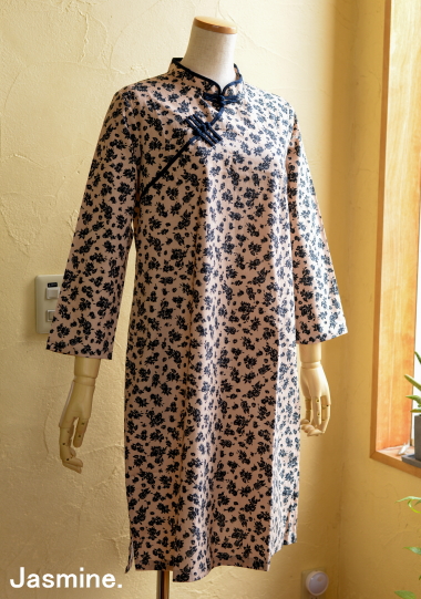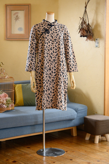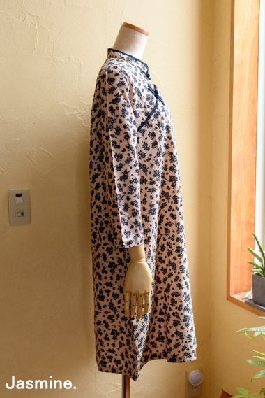 | スモールフラワーカジュアルワンピース 7500-+Tax (8250) ![]() カジュアルなシルエットのチャイナワンピースです。 パンツに合わせるのも素敵。 日常使いにしやすい低めの襟ですが、チャイナボタンでしっかりチャイニーズテイスト ★お色はお使いのモニターや端末によってニュアンスが違って見えることがございます。 ・素材・ コットンリネン 裏地なし ・お手入れ・ 洗濯ネット・おしゃれ着用洗剤使用・洗濯機弱水流 アイロン高温(あて布) ・サイズ・ Mサイズ バスト104 着丈96 袖丈50 肩幅37 (cm) Lサイズ バスト106 着丈97 袖丈51 肩幅38 (cm) 身幅などはあまりサイズ差がありませんのでシルエットはさほどかわりません。 スタイリッシュに見えるよう肩幅はやや小さめに作っていますので、肩幅で選ばれたらいいかなと思います。 たっぷりめのシルエットですので、カジュアルに着たいただけますよ クラッシックブルーフラワー ![]() 地色は少しだけピンクがかったベージュ色です。 ネイビーと相まってクラシカルな雰囲気 リネンコットン素材でしゃきっとした生地感 ![]() ![]() ![]() |