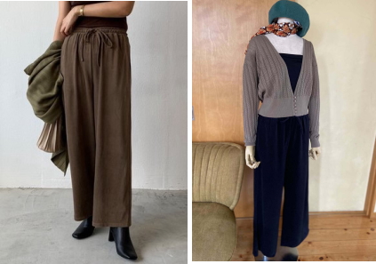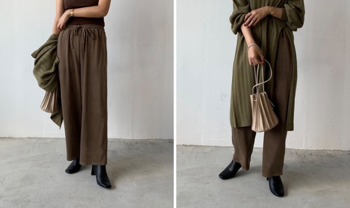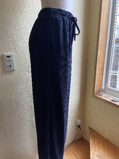 | 細畝コーデユロイイージーパンツ 4400-(4000+Tax) ![]() のびのび素材のコーデュロイパンツ。 しっかりした素材なのおうちでくつろぐシーンだけでなく、おしゃれ着としても重宝します。 ワンピースやチュニックに合わせるのにもおすすめです。 ・サイズ・ ウエスト65~78cmくらいの方 ヒップ91cm 股上31cm 股下67cm スソ幅54cm ストレッチのきいた素材です |