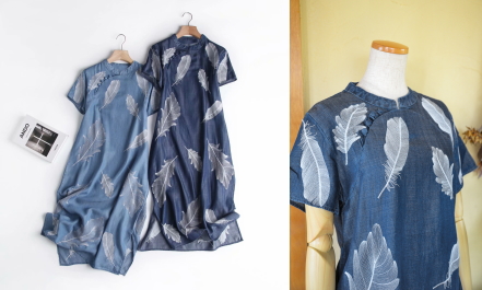 フェザー刺繍カジュアルチャイナワンピース