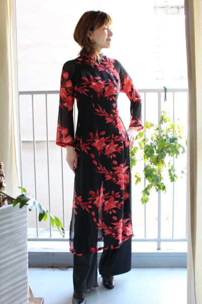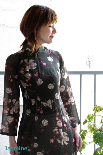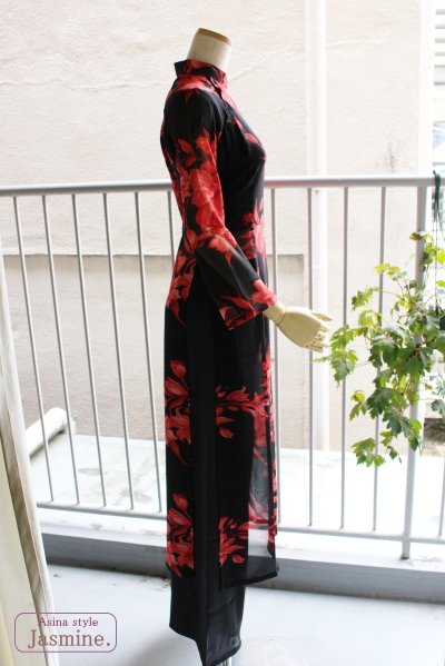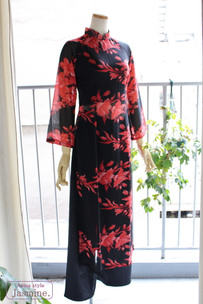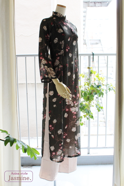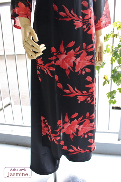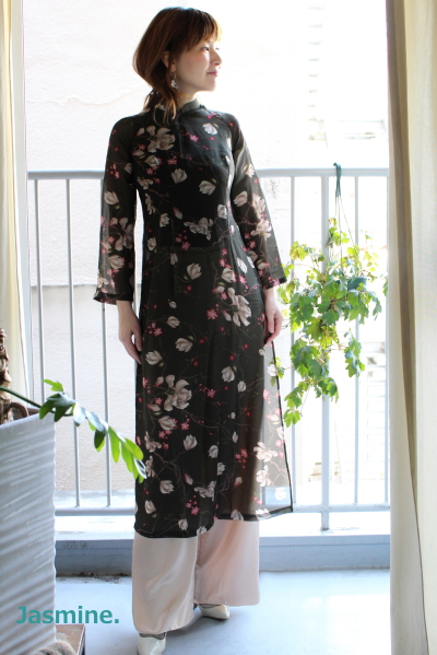 | シアーアオザイ(パンツセット) price17000+Tax ![]() ベトナムの民族衣装 アオザイ 伝統的なデザインはそのままに、モダンなエッセンスを少しだけ 着るだけで、女性らしい優美さと知的で清楚な雰囲気を演出できます ご自宅で洗える手軽さもヨシ ウエストからおおきく開いたスリット、サイドから動くたびに見えるたっぷりしたワイドパンツが とてもスタイルをよく見せてくれるドレスです。 ・素材・ アオ:ジョーゼット パンツ:サテン シアーな素材ですが前身頃後ろ身頃とも、ウエストまで裏地がついています ・サイズ・ ![]() S:バスト88 裄丈59 ウエスト72 着丈129 袖まわり34(cm) パンツ ウエスト64~72cm ウエストから裾102cm M:バスト92 裄丈60 ウエスト76 着丈130 袖まわり34(cm) パンツ ウエスト68~76cm ウエストから裾103cm L:バスト96 裄丈61 ウエスト80 着丈131 袖まわり34(cm) パンツ ウエスト72~80cm ウエストから裾104cm ・お手入れ・ 手洗い(おしゃれ着用洗剤) アイロン中温 ![]() 胸元から右サイドがスナップボタンで留まるアオザイ独特のスタイルです ウエストは、フロントファスナーで後ろだけ一部ゴム入りですので伸縮します。 |
