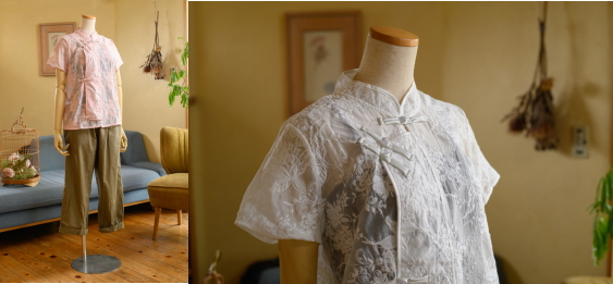 | 中国映画の主人公の女の子が着ているような、 ノスタルジックで自然体なチャイナスタイルの服 上海娘 茉莉花のクローセットをのぞきこんだような そんな世界観で展開するシリーズ 着るだけでシノワズリな気分がぐっとアガル でもちゃんと日常使いができるお洋服を製作・セレクト! |